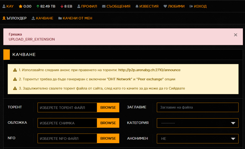 Колеги, има някакъв проблем като се опитвам да кача торент: